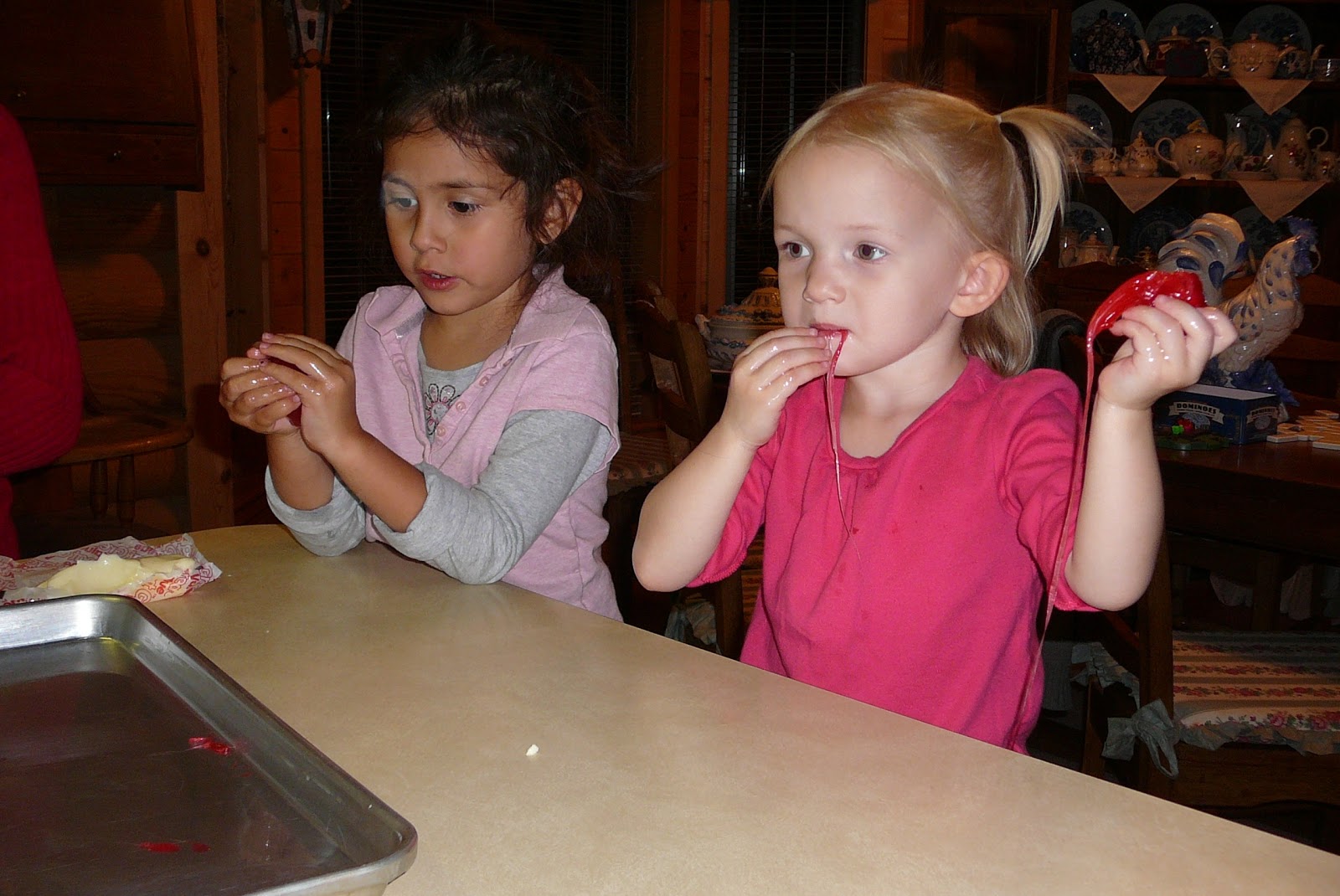Yes, she has popcorn in her mouth in every picture. I'm pretty sure this is why she likes sporting events...nothing wrong with a little bribery! :)